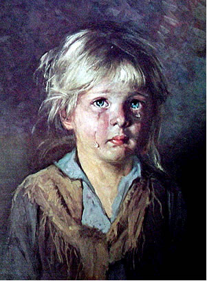 Reza a praga que como fruto de um pacto com o diabo, os quadros causam incêndios espontâneos, reduzindo domicílios a cinzas – mas os retratos em si mesmos saem intactos das chamas, para espalhar mais destruição aleatória. As crianças que choram riem por último.